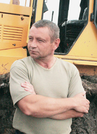 Такая махіна павінна быць у надзейных руках, разумееш гэта, калі Сяргей Анатольевіч Бадроў пад’язджае на сваім бульдозеры бліжэй. “Я ўсяго месяц за рулём гэтай машыны, папярэдняя 30 год па палях ездзіла. Таму ўсе параўнанні, канешне, на карысць новага агрэгата”, – дзеліцца ўражаннямі меліяратар. Машына гэтая важыць аж 20 тон і працуе на самых складаных аб’ектах, некаторыя работы ў раёне пад сілу выканаць толькі ёй. Таму няма неабходнасці казаць, што кіраўніцтва ПМС давярае работніку, які лёгка апраўдвае спадзяванні ўжо амаль на працягу 20-ці год. Сяргей Анатольевіч пакінуў уражанне чалавека ўпэўненага ў сабе, цэльнага, з пачуццём гумару.