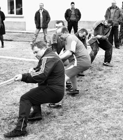 Завяршалі спартакіяду спаборніцтвы па перацягванні каната. Гэта, відаць, былі самыя прынцыповыя спаборніцтвы, бо лясгасаўскія канатчыкі доўгі час з’яўляюцца лідарамі ва ўсіх раённых стартах, амаль не маюць канкурэнтаў у вобласці. Прызавая тройка наступная: першае месца – Шумілінскае лясніцтва, другое – Мікіціхінскае, трэцяе – адміністрацыя лясгасу.