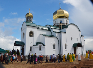 Літургія ў храме працягваецца хрэсным ходам вакол царквы, ўрачыстым і ўзнёслым. Пасля, ужо ў храме, да прысутных звяртаецца протаіерэй Міхаіл: “Шчыра раздзяляю з вамі вялікую радасць. Калісьці на гэтай зямлі было шмат храмаў, потым не засталося ніводнага. Новы храм стане аплотам духоўнага адраджэння, духоўнай апорай ў жыцці прыхаджан, усіх жыхароў Обальшчыны. Спадзяюся, што недалёкі той час, калі мы будзем святкаваць адраджэнне Свята-Мікалаеўскай царквы і ў райцэнтры. Цяпер ідзе адраджэнне царкоўнага жыцця, храмы будуюцца па ўсёй Віцебскай вобласці, па ўсёй Беларусі. Гэта падчас візітаў на віцебскую зямлю заўважылі і высока ацанілі Патрыярх Маскоўскі і ўсяе Русі Кірыл, новапрызначаны Экзарх усяе Беларусі Павел”.