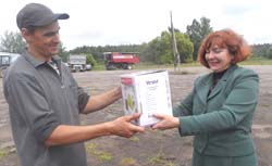 Павіншаваць пераможцаў раённага конкурсу маладых механізатараў і ўручыць ім падарункі за добрую работу ў гаспадаркі завіталі намеснік начальніка ідэалагічнай работы, культуры і па справах моладзі В. Г. Навіцкая, старшыня райкама прафсаюза работнікаў АПК В. В. Юхнавец.
