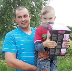 Мікалая Жыгунова з ААТ “Прыазёрны мір” засталі за работай ва ўрочышчы Лялюгі: на сваім МТЗ ён перавозіў да сянажнай траншэі зялёную масу. На рахунку механізатара – больш за дзве тысячы тон, гэта адзін з лепшых паказчыкаў ў раёне. “Дзе толькі ні працую: вясной чапляў плугі, сеялку, а ў ліпені сяду на камбайн”, – кажа Мікалай. Разам з бацькам на полі быў і шасцігадовы сын Мікіта. “Люблю свайго татку, – сказаў хлопчык. – Люблю з ім катацца на трактары, вось толькі шкада, што мае ногі не дастаюць да педаляў. Хачу хутчэй вырасці і працаваць на трактары. Як тата.”