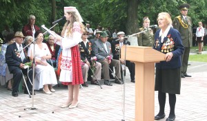 Ад імя тых, хто выстаяў і перамог у гады Вялікай Айчыннай, слова Кацярыне Васільеўне Мацвеенка. Яе словы — з глыбіні душы, з глыбіні памяці: “Вставай, страна огромная, вставай на смертный бой…”, — цытуе яна неўміручыя радкі ваеннага гімна. І ва ўсіх прысутных захінае сэрца, хочацца нізка схіліцца перад жанчынай і яе баявымі сябрамі.