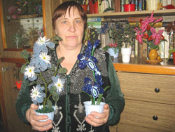 Пытаюся ў гаспадыні пра сакрэт яе захаплення. “Уседлівасць і цярпенне – галоўнае”, – кажа яна. А яшчэ для работы трэба добра падрыхтавацца – накупляць рознага колеру і формы бісеру, ніткі, гіпс, флораленты, знайсці патрэбнай таўшчыні дрот, назбіраць прыроднага матэрыялу.