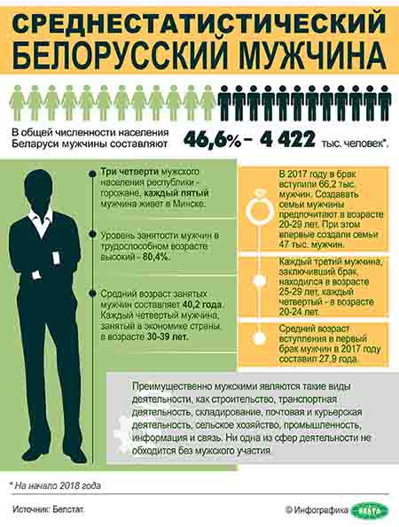 Соотношение детского населения сохраняется в пользу мальчиков, поскольку в среднем в год на 100 девочек рождается 104-105 мальчиков. На 1000 мальчиков в возрасте до 16 лет приходилось 945 девочек. Однако уже к 34 годам более высокая смертность мужчин приводит к примерному равенству полов, при этом диспропорция в пользу женщин в городской местности начинается с 29 лет, в сельской — с 59 лет. «То есть на селе отмечается явный дефицит невест», — сказала Елена Кухаревич.