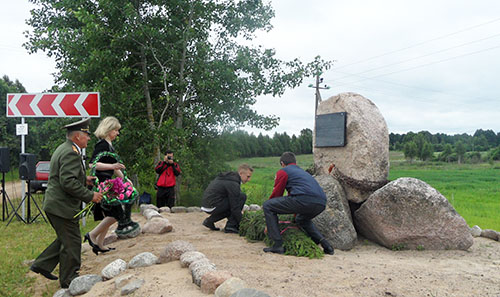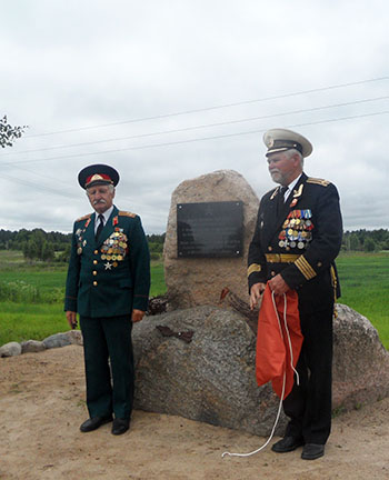 Ініцыятарам стварэння памятнага знака з’явіўся старшыня раённай арганізацыі “Беларускі саюз ваенных маракоў” А. Л. Бычкоў. Ён расказаў, пра той крывавы бой, які ішоў у Мазурах у 1944 годзе. Апорны варожы пункт узяць было нялёгка, бо подступы былі замініраваны, вакол пункта было тры рады калючага дроту. “Менавіта тут разведкай боем 22 чэрвеня 1944 года быў дадзены пачатак легендарнай аперацыі “Баграціён”, – адзначыў Анатоль Леанідавіч. Многа савецкіх салдат тут палягло, усе яны пахаваны на брацкіх могілках у Валатоўках.