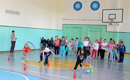 А на стадыёне настаўнікі фізічнай культуры і спорту праводзілі малыя алімпійскія гульні.