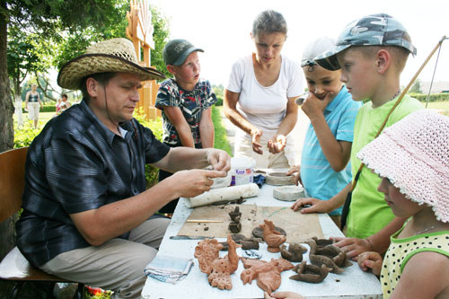 Інтарэс выклікаў майстар-клас па вырабу птушак з гліны, які праводзіў кіраўнік гуртка Цэнтра пазашкольнай работы У. П. Каласкоў. У руках майстра гліна ўмомант пераўтваралася ў свістулькі, медальёны, птушак… Можна было і самім вылепіць што-небудзь. Самымі смелымі аказаліся дзеці. Паспрабавалі сябе ў майстар-класе і госці са сталіцы. «Магчыма, запросім Уладзіміра Пятровіча Каласкова на чарговы з’езд АПБ, каб госці, у тым ліку і замежныя, маглі таксама папрацаваць з гэтым прыродным матэрыялам», — паведаміла спецыяліст АПБ Кацярына Ціхно.