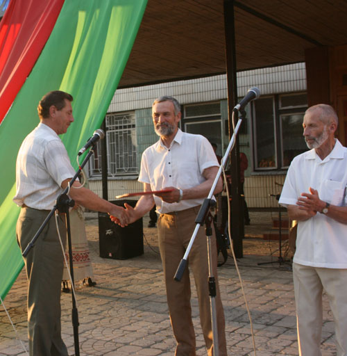 Узнагароду ўручыў намеснік старшыні райвыканкама А. М. Зайцаў.