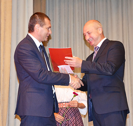 Звяртаючыся да юбіляраў, кіраўнік раёна назваў іх калегамі, і гэта не выпадкова. “Усё маё дзяцінства прайшло на тэрыторыі Лёзненскага ДРБУ №107. Бацька мой – дарожнік, брат таксама, ды і сам я 5 год працаваў у гэтай галіне. Мы з вамі сябры”, – патлумачыў сваю пазіцыю Аляксандр Снараў. Ён абазначыў важнасць няпростай работы дарожнікаў, выказаў словы віншаванняў ветэранам працы, якіх у святочнай зале было багата. Асобныя словы – у адрас сённяшняга кіраўніка Руслана Насцюшкіна, які, па словах А. І. Снарава, узначальвае сёння самую моцную арганізацыю ў раёне. “ДРБУ-204 паказвае прыклад усім арганізацыям па эфектыўнасці, прадукцыйнасці працы, якасці работ, дысцыплінаванасці і па навядзенні парадку на сваёй тэрыторыі. Дзякуй вам за стабільную працу”, – віншаваў юбіляраў Снараў. Ён паціснуў руку Р. М. Насцюшкіну, дадаўшы, што акрамя ўсяго гэты малады кіраўнік яшчэ і выдатны сем’янін. Ганаровай граматай Шумілінскага райвыканкама быў узнагароджаны Д. К. Назараў – машыніст укладчыка асфальтабетону.