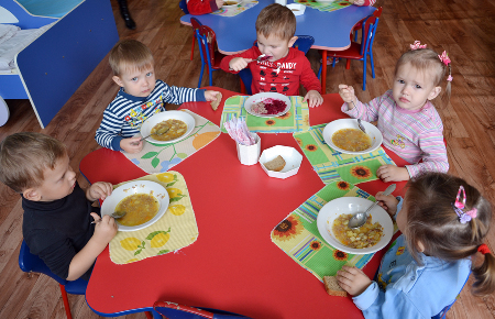 Харчаванне дзяцей у дзіцячых садах вядзецца за бацькоўскія грошы. І калі мець на ўвазе санітарныя нормы, згодна з якімі дзіця павінна есці кожныя 3,5-4 гадзіны, то яны вытрымліваюцца. Малодшыя школьнікі бясплатна атрымліваюць сняданкі і ў вясковых, і ў гарадскіх школах. А вось за абед гарадскім дзецям (гэта тычыцца школ у Шуміліне і Обалі) прыходзіцца плаціць. Акрамя таго, згодна з заканадаўствам бясплатна ці за частковую плату харчуюцца пэўныя катэгорыі дзяцей (напрыклад, дзеці з абмежаванымі магчымасцямі, дзеці са шматдзетных сем’яў і ішыя).