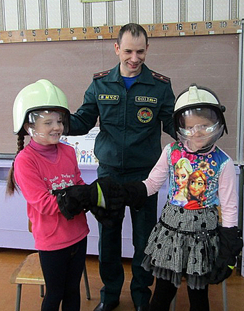 Дзяцей, дарэчы, цікавілі пытанні: як стаць выратавальнікам, куды можна паступаць вучыцца, як часта прыходзіцца выязджаць на розныя надзвычайныя сітуацыі.