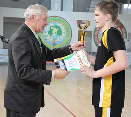 На здымку: Кубак пераможцаў атрымлівае капітан каманды Данііл Сафонаў.