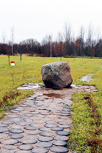 А яшчэ на ўваходзе з’явіўся вялікі камень. На ім работнікі лясгасу мяркуюць устанавіць памятную дошку “хроснаму бацьку” дэндрапарка – Глушыну Віктару Вікенцьевічу, першаму дырэктару лясгаса, ініцыятару і стваральніку гэтай, можна сказаць, унікальнай тэрыторыі. У пачатку 2000-х, адразу пасля стварэння лясгаса, яму трэба было акультурыць даволі буйную па плошчы – 8 га – няўдобіцу на пустэчы. Так было вырашана распачаць будаўніцтва дэндрапарка. Трэба прызнаць, вельмі ўдалы ландшафт аказаўся для гэтых мэт: тут і горкі, і нізіны, і прыродныя сажалкі…