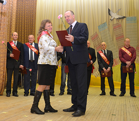 Старшыня райкама прафсаюзаў работнікаў аграпрамысловага комплексу Вольга Пусянкова ўручыла граматы работнікам перапрацоўчых прадпрыемстваў. Таксама быў адзначаны як лепшы машынны двор ААТ “Прыазёрны мір”.