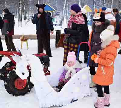 А тым часам над гарадскім паркам ваўсю ішоў дым ад свежаспечаных бліноў, разносіўся дзіцячы смех са снежных горак, гучалі песні і жарты – тут шчодра адзначалі Масленіцу.