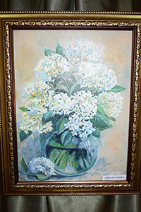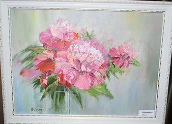 “Летні матыў” – і вы адчуваеце подых ветру, “На арэлях – святло і лёгкасць агортваюць вас, “Півоні”, “Красуня”, “Рамонкі ў бірузовай вазе”, “Бэз” – вас чаруе пяшчотная раскоша цвіцення, “Фіялетавы захад”, “Макавае поле”, “Залаты полудзень, “Фрукты” – вы ўражаны сочнасцю колераў…