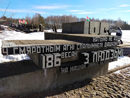 Так, 22 сакавіка 1943 года звар’яцелыя фашысты ўварваліся ў вёску Хатынь і акружылі яе. Жыхары нічога не ведалі пра тое, што раніцай за 6 км ад Хатыні партызанамі была абстраляная аўтакалона фашыстаў і ў выніку нападу забіты нямецкі афіцэр. Фашысты вынеслі смяротны прысуд усёй вёсцы. У гэты дзень загінула 149 чалавек, у тым ліку 75 дзяцей.