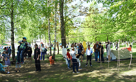 На стадыёне разгарнуліся спаборніцтвы па пляжным валейболе і футболе. Бібліятэка прапанавала паспяваць песні ваенных часоў.