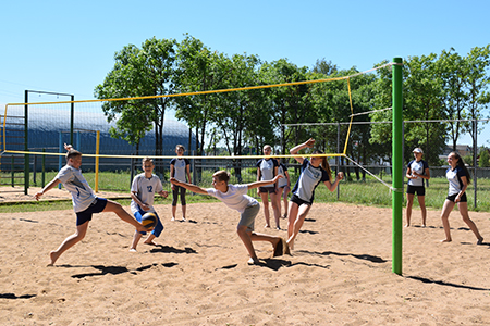 Не абышлося ў гэты дзень і без валейболу. У таварыскай гульні дзяўчыны гулялі супраць хлопцаў.