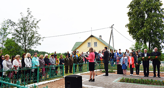 Багата людзей сабралася каля брацкіх могілак у цэнтры аграгарадка. Гэта і мясцовыя жыхары, якія прыйшлі на свята сем’ямі, і дэлегацыі з райцэнтра.