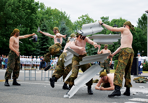 Мерапрыемствы на цэнтральнай плошчы і ў гарадскім парку ладзіліся ў гэты дзень да позняй ночы і фінішавалі яркім феерверкам. Уражваючымі былі паказальныя выступленні 103-й асобнай гвардзейскай паветрана-дэсантнай брыгады. Дэфіле ваеннага аркестра дывізіі, майстар-клас па зборцы зброі ад яе байцоў таксама мелі поспех. Трапяткім і кранальным быў тэатралізаваны рэквіем “Высечаныя ў камяні”, які прайшоў на брацкіх могілках. Са слязамі на вачах, з абяцаннем ніколі не забыць, з ціхім паклонам перад подзвігам герояў вайны.