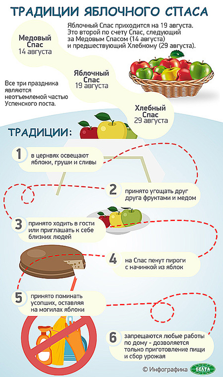 В этот день освящением яблок и меда задабривают приближающуюся осень. Среди всех плодовых деревьев яблоня особо почитаема у восточных славян. Она не только символизирует жизнь, вечность и бессмертие, считалось, что она может наделить этим и человека, одарив его плодами.