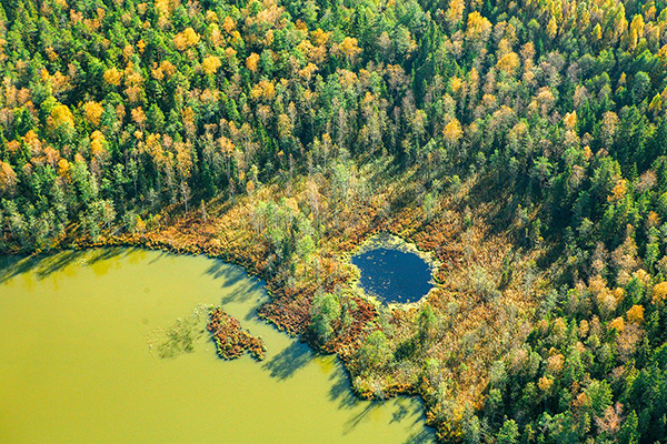 6. Тут маецца сістэма азёр, у якую ўваходзіць больш за сотню другасных азёр дыяметрам ад 20 да 50 метраў.