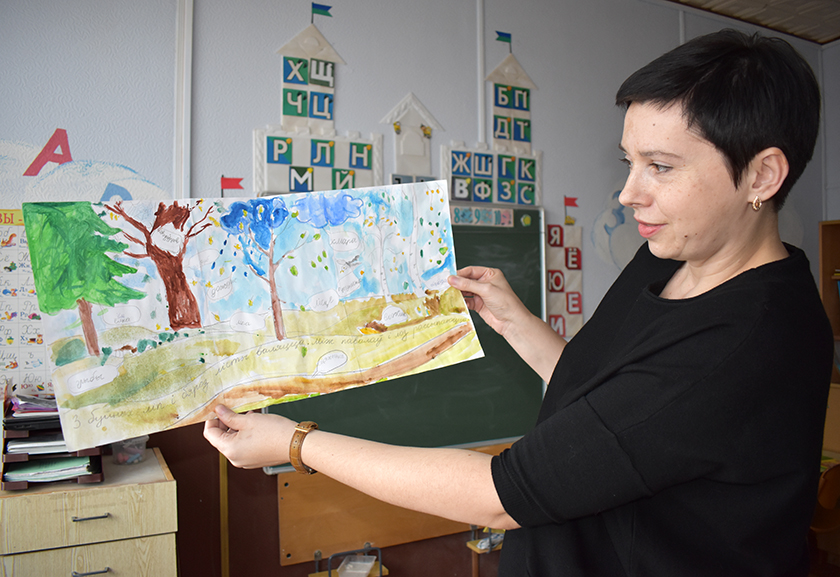 – Ды гэта наш настаўнік-дэфектолаг Таццяна Кірпічэнка, – ахвотна дзеліцца Жанна Іванаўна, – яна проста знаходка для нас і як настаўнік, і як афарміцель. Вось ужо тры гады Таццяна Анатольеўна дапамагае нам рыхтаваць кабінеты да новага навучальнага года. Яна не толькі багатая на ідэі, але з лёгкасцю ўвасабляе іх. Як бачыце, атрымліваецца выдатна.