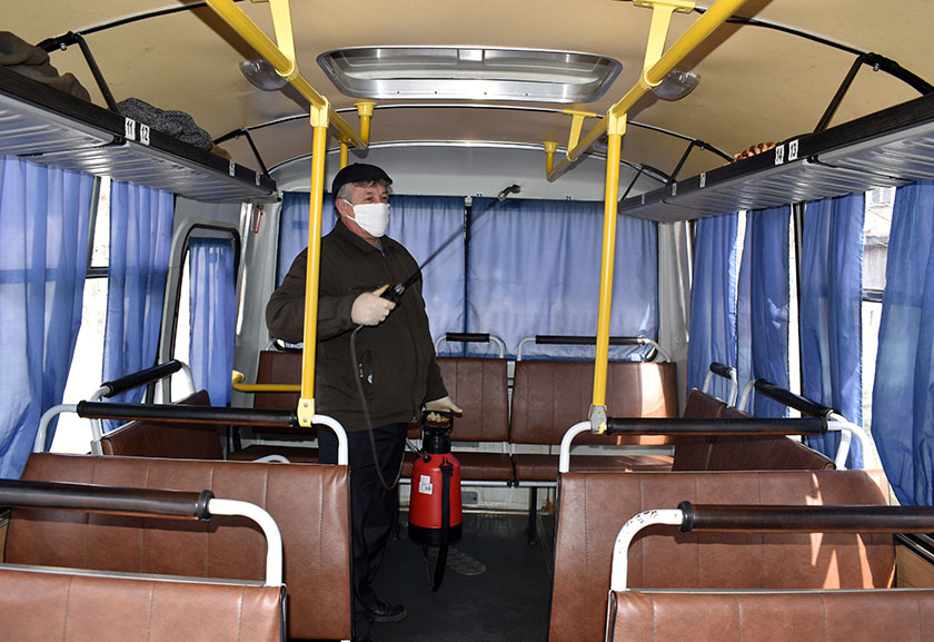 У грамадскім транспарце ўзмоцнены меры дэзынфекцыі для прафілактыкі распаўсюджвання інфекцыі: з антысептыкам пасля кожнага рэйсу і ў канцы змены праціраюцца сядзенні, поручні, дзверы, абшыўка салона, аконнае шкло, праводзіцца вільготная ўборка падлогі. Дэзынфекцыю салонаў паміж рэйсамі робяць самі вадзіцелі.