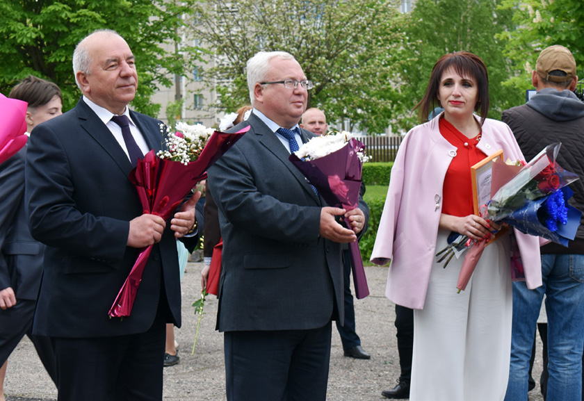 Со словами поздравлений к учащимся, педагогическому коллективу обратился Владимир Терентьев. Особые слова сказал выпускникам. Владимир Владимирович обратил внимание на то, что в городском поселке Оболь многое делается по Программе возражения малых городов. Не обошли стороной позитивные изменения и школу, которая существенно преобразилась.