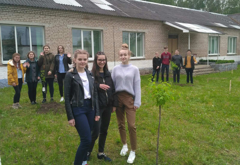 13 выпускнікоў раённай гімназіі на развітанне падарылі роднай установе незвычайны сад – пасадзілі дрэвы сакуры і гінкга.