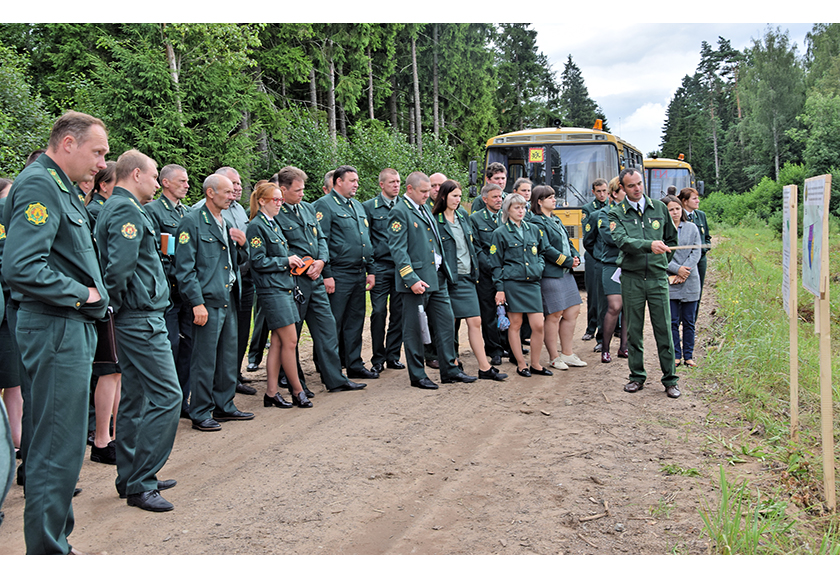 Удзельнікі семінара на адным з участкаў Мікіціхінскага лясніцтва.