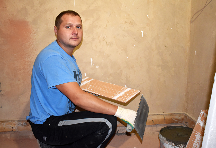 Квадратных метраў аказалася больш у Юрыя Барысава (за 2 гадзіны паклаў 9 кв. м пліткі).