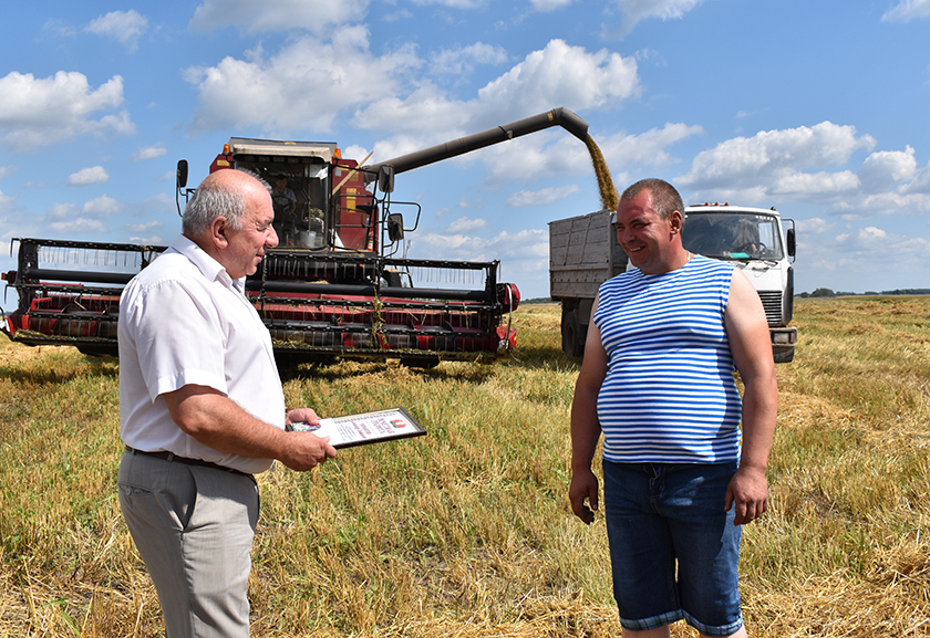 Першага ў гэтым годзе тысячніка ў раёне на жніўныя палеткі прыехалі павіншаваць старшыня раённага выканаўчага камітэта Віктар Гутараў, старшыня райкама прафсаюза работнікаў АПК Вольга Пусянкова.