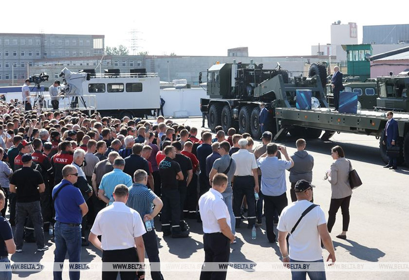 Глава государства также побывал в цехах предприятия, ознакомился с его работой. Затем посетил находящиеся по соседству цеха МАЗа, где пообщался с представителями трудового коллектива и с ними также обсудил текущую ситуацию.