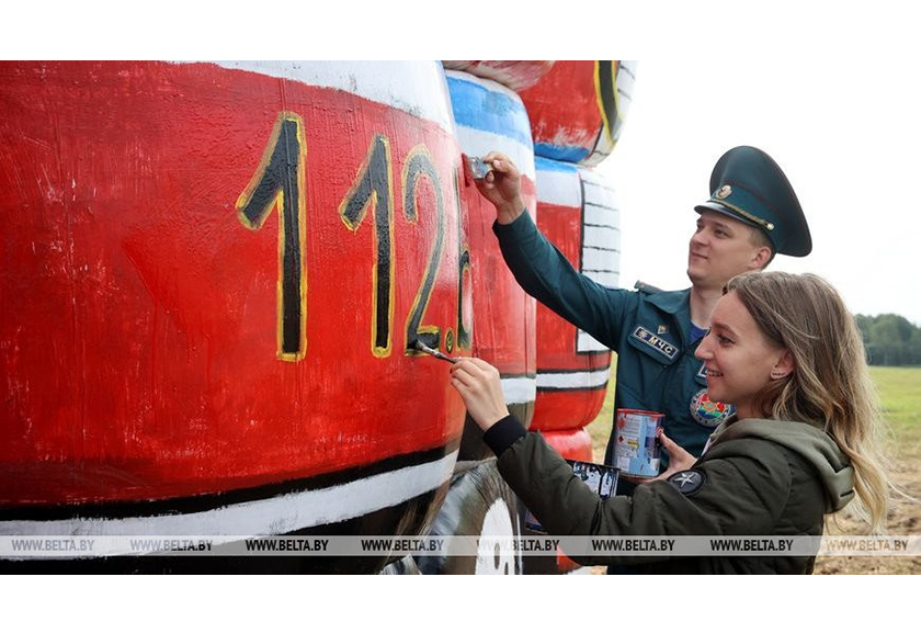 3 сентября, Витебск /Корр. БЕЛТА/. На трассе Витебск-Псков сотрудники Городокского РОЧС из 45 тюков соломы смастерили пожарную машину высотой около 4 м и длиной 10 м. Соломенный транспорт находится на территории Бычихинского сельсовета между деревнями Кузьмино и Светлые.-0-