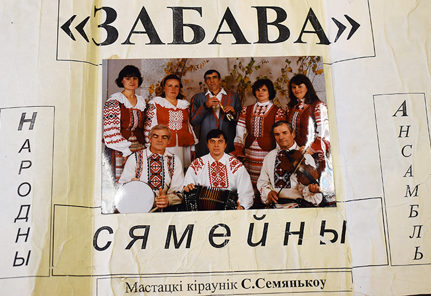 Тут жа мы бачым афішу народнага сямейнага ансамбля, на якой фатограф (магчыма, і наш Віктар Палісадзін) адлюстраваў Віктара Сокалава, Сяргея Семянькова, Аляксандра Мятлу (першы рад злева направа), Вольгу Сташонак, Валянціну Церанок, Аляксандра Ярмоленку, Таццяну Чарткову і Жанну Васільчанку.