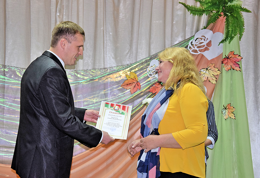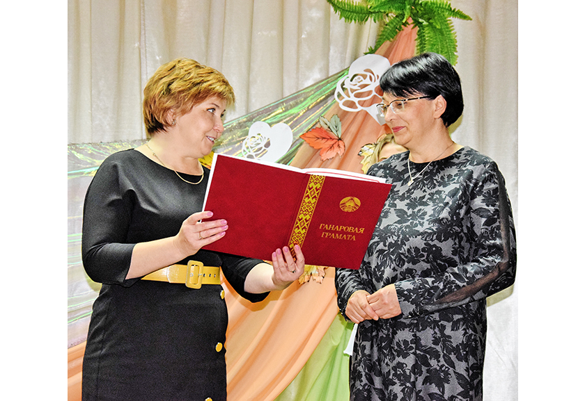 Віншаванні калегам са святам адрасавала старшыня раённай арганізацыі Беларускага прафесійнага саюза работнікаў культуры, інфармацыі, спорту і турызму Алена Сініцкая, якая ўручыла граматы абкама прафсаюзаў работнікаў культуры, інфармацыі, спорту і турызму настаўніку па класе баяна ДШМ Святлане Чартковай і метадысту ЦБС Таццяне Іваноўскай.