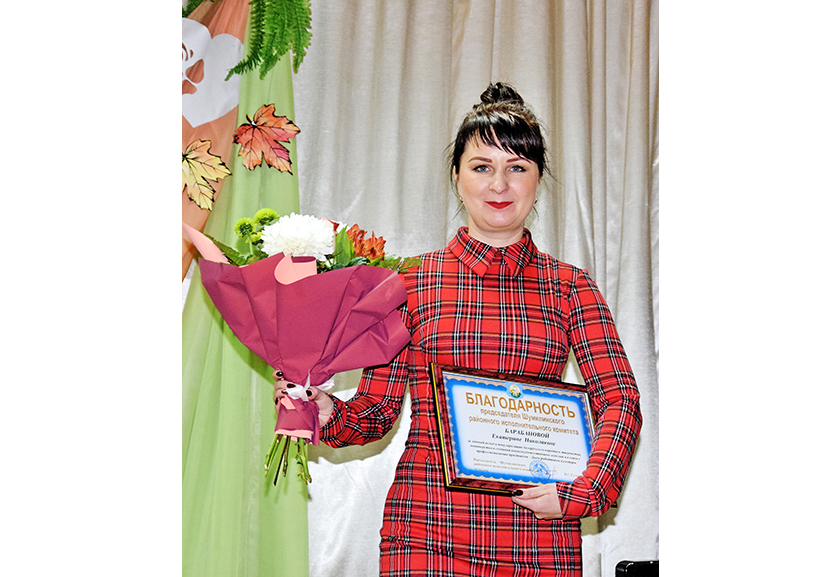 Ірына Іванаўна пажадала ўсім здароўя, творчасці, прызнання, сямейнага шчасця і ўручыла Ганаровую грамату раённага выканаўчага камітэта Насыр Галіне Фёдараўне, настаўніку па класе домры Шумілінскай дзіцячай школы мастацтваў – за прафесіяналізм у рабоце, бездакорную шматгадовую працу, плённы ўклад па музычным выхаванні падрастаючага пакалення, высокі ўзровень прафесійнай кампетэнтнасці і адказнасці.