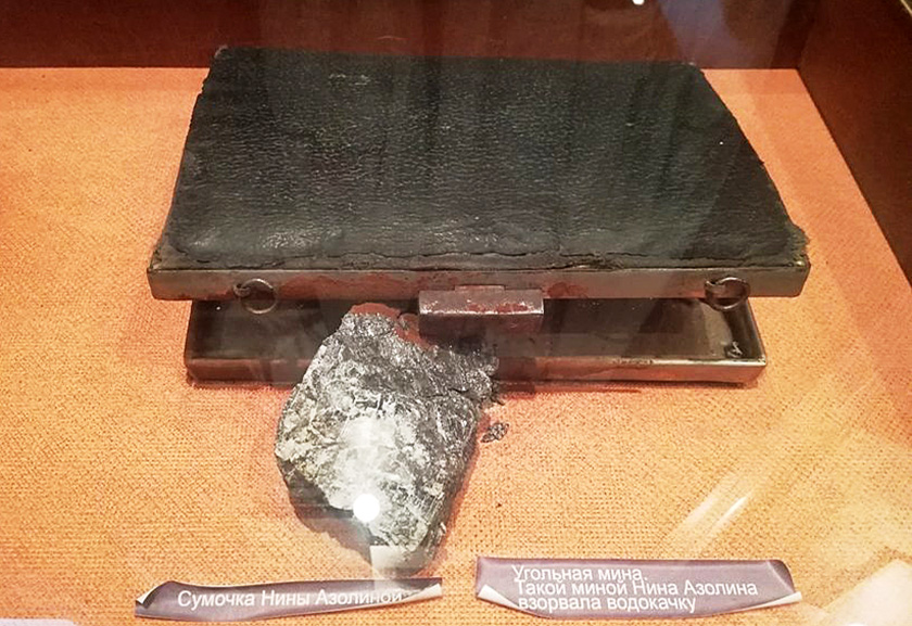 Сумачка Ніны Азолінай з вугальнай мінай, якой яна ўзарвала вадакачку.