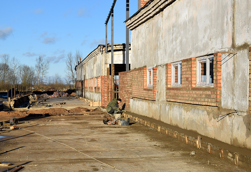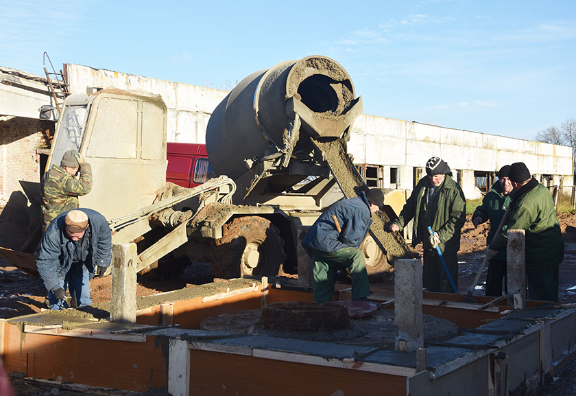 Разам з Анатолем Віктаравічам ідзём на будаўнічы аб’ект. На адным краі пляцоўкі працуе бетонамяшалка, да другім з аўтамабіля разгружаюць будаўнічыя матэрыялы. Да рабочых, якія займаюцца будаўніцтвам гноесховішча, пад’язджае экскаватар. Яшчэ адна брыгада рупіцца на даху.