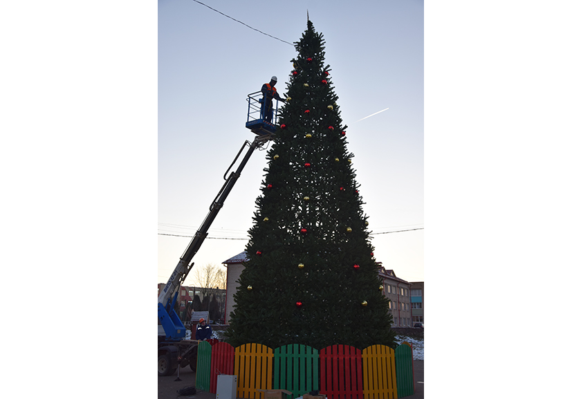 У панядзелак работнікі камунальнай службы пачалі ўстанаўліваць каркас навагодняга дрэва. На наступны дзень на ім былі замацаваны шматлікія ялінкі, і дрэва набыло завершаны выгляд.