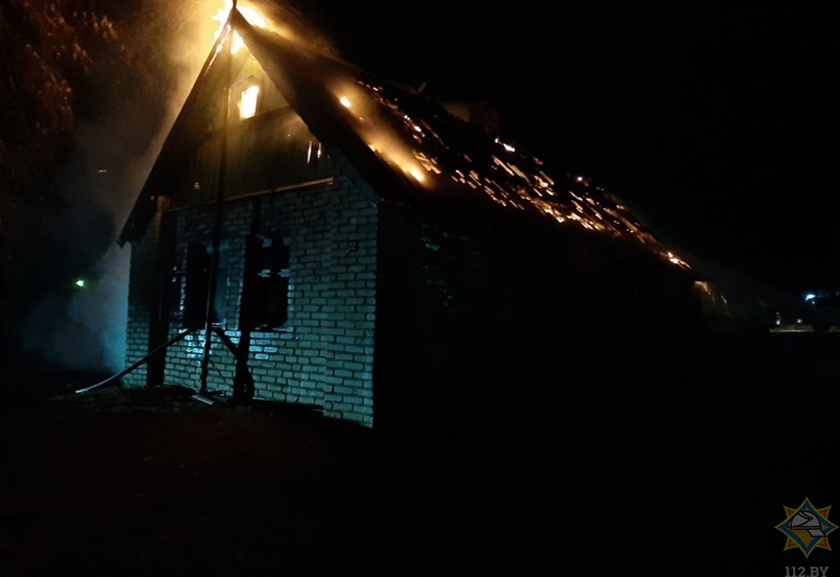 Па прыбыцці да месца здарэння падраздзяленняў РАНС назіралася адкрытае гарэнне даху і гарэнне ўнутры дома.