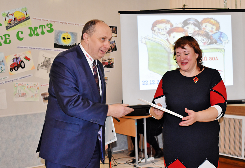 Акрамя гэтага, генеральны дырэктар МТЗ Віталь Міхайлавіч Воўк уручыў гімназіі сертыфікат на набыццё навяснога абсталявання для трактара – шчоткі і сертыфікат на 7 тысяч рублёў на развіццё матэрыяльна-тэхнічнай базы. «Мы вельмі марым пра касілку і бульбакапалку, – прызналася дырэктар гімназіі Ларыса Маладзечкіна. – Штосьці з гэтага і прыдбаем».