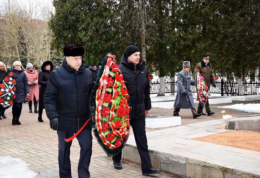 Удзельнікі мітынгу – кіраўніцтва раёна, прадстаўнікі арганізацый і прадпрыемстваў райцэнтра, грамадскіх арганізацый – ушанавалі памяць воінаў хвілінай маўчання, усклалі да помніка вянкі і кветкі.