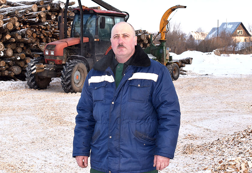 На трактары «Беларус-1553» Павел Барысоўскі працуе з ру-більным комплексам, здрабняе драўніну на паліўную шчапу для кацельняў прадпрыемства. Што-дзень вырабляе 1200-1500 кубаметраў, штомесяц перавышае нормы на 110-120%. За 2020 год Павел Барысоўскі вырабіў амаль 13 тысяч кубаметраў шчапы.