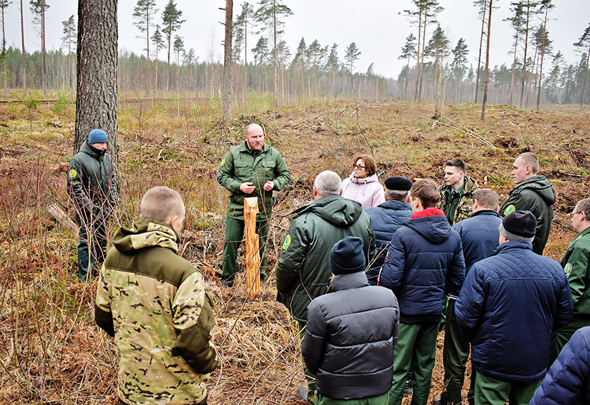 Пасля ўдзельнікі семінара адправіліся ў лес, пабывалі па двух вытворчых участках-лесасеках. З правіламі і нюансамі правядзення засведчвання лесасек, алгарытмам арганізацыі работ і афармленнем неабходнай дакументацыі пазнаёміла начальнік аддзела лясной гаспадаркі і лесааднаўлення лясгаса Галіна Міглан. Слушныя парады маладым калегам давалі вопытныя ляснічыя Сяргей Сцепанец, Андрэй Калдуноў.