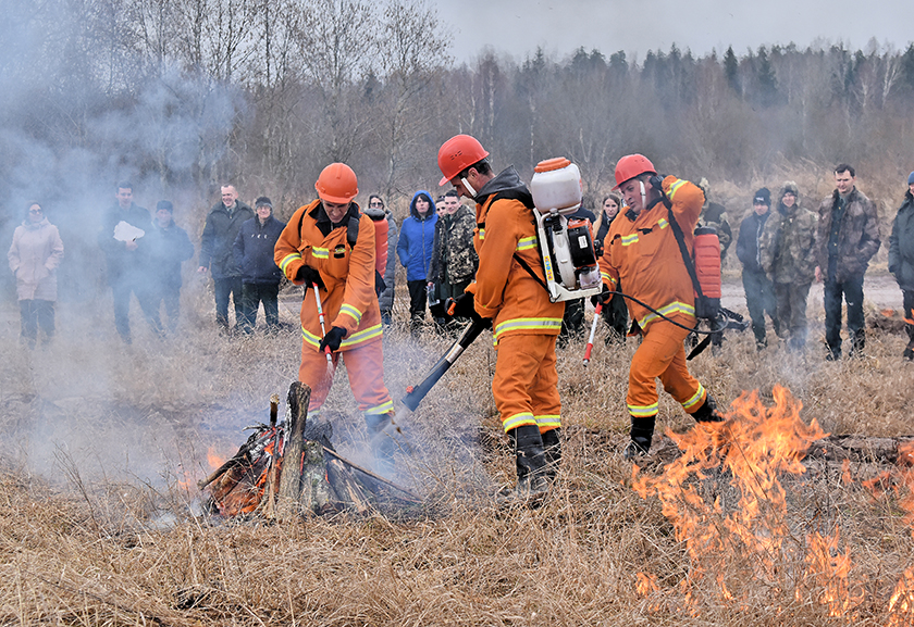Работнікі Обальскага лясніцтва прадэманстравалі тактыку і спосабы тушэння пажараў.