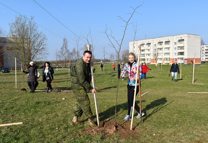 Работнікі райвыканкама на чале са старшынёй раённага Савета дэпутатаў Мікалаем Будневічам саджалі дрэвы на вул. Юбілейнай.