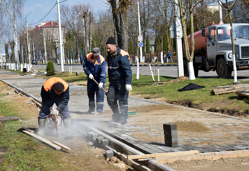 У рамках падрыхтоўкі да абласнога фестываля-кірмашу працаўнікоў сяла «Дажынкі» на вуліцах Шуміліна кіпіць работа. На суботніку работнікі ўстаноў культуры здымалі старую плітку з тратуараў па вуліцы Ленінскай, у той час як дарожнікі выкладалі новай пліткай тратуары на вуліцы Кароткіна.